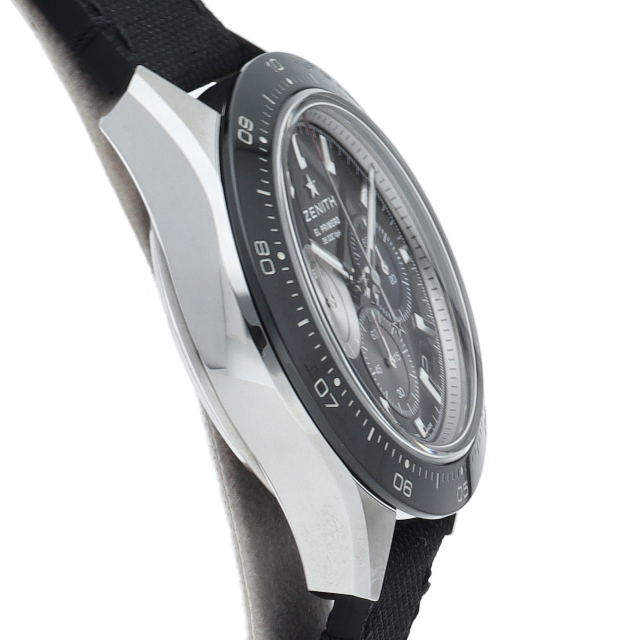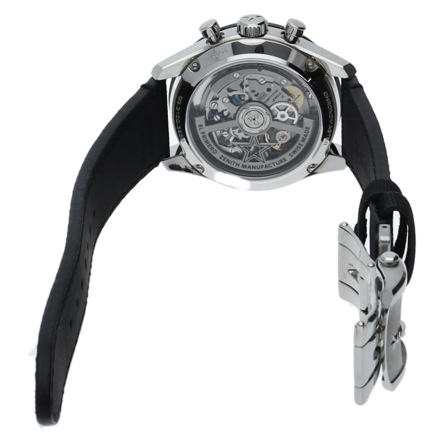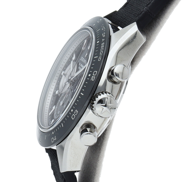 クロノマスター スポーツは、ゼニスが50年以上に渡って探求してきたスポーティーなクロノグラフと自動巻クロノグラフ キャリバーの頂点に立つモデルです。1/10秒単位の精度で経過時間を計測および表示する最新のエル・プリメロ クロノグラフ キャリバーを搭載したこのモデルは、現代的でありながら見間違えることのないゼニスらしいデザインを備えています。
