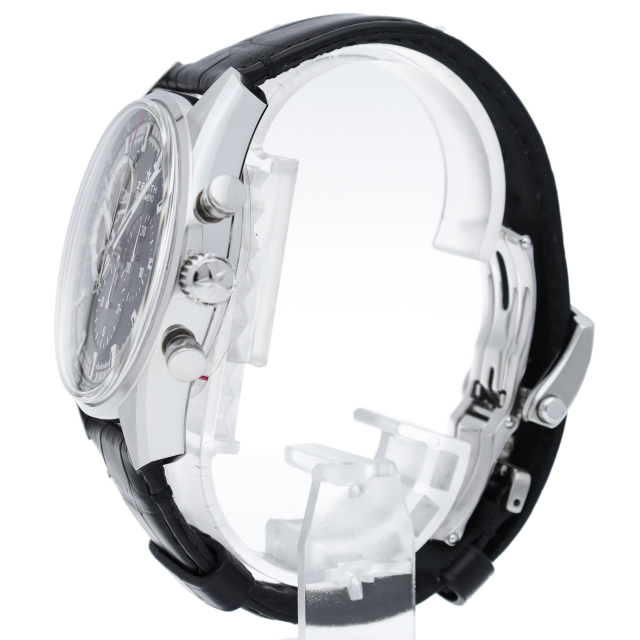 もはや説明は要らない程の絶大な人気と知名度を持つ、名機エルプリメロを搭載した「クロノマスター」。1969年発表の初代エル・プリメロをイメージした色使いが特徴的です。シースルーバッグからムーブメントもご覧いただけます。