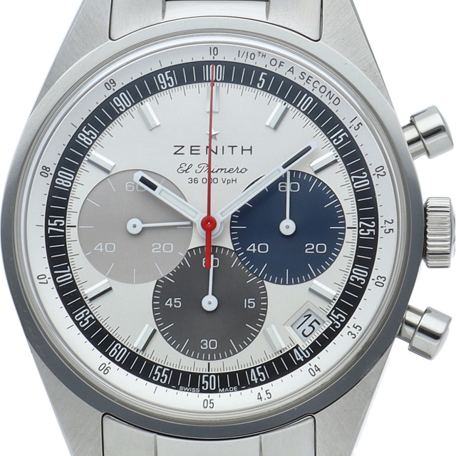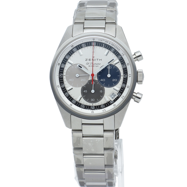 クロノマスター オリジナルには、A386と同じフォルムの38mmスチール製ケースが付属しており、アイコニックな3色文字盤とブルーのレザーストラップが取り付けられています。高振動エル・プリメロ 3600自動巻クロノグラフムーブメントを搭載し、1/10秒精度のクロノグラフ機能と60時間のパワーリザーブを備えています。
