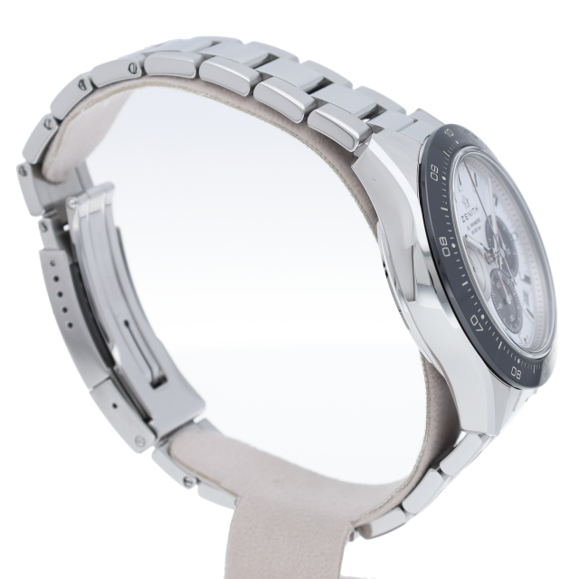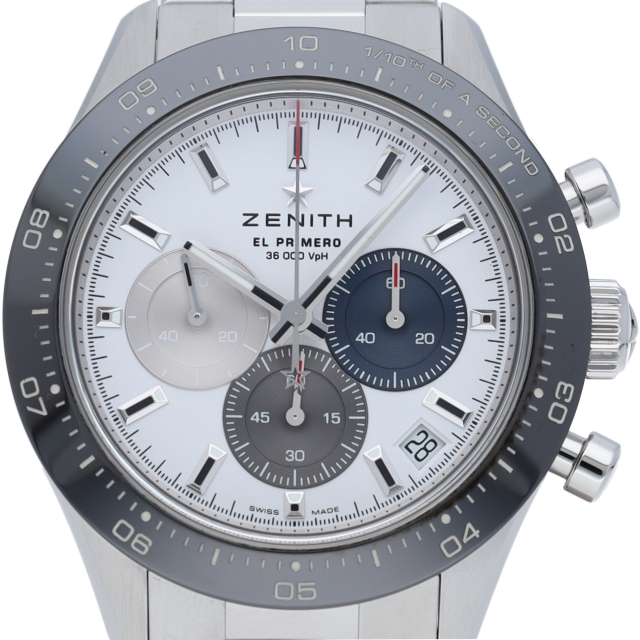 クロノマスター スポーツは、ゼニスが50年以上に渡って探求してきたスポーティーなクロノグラフと自動巻クロノグラフ キャリバーの頂点に立つモデルです。1/10秒単位の精度で経過時間を計測および表示する最新のエル・プリメロ クロノグラフ キャリバーを搭載したこのモデルは、現代的でありながら見間違えることのないゼニスらしいデザインを備えています。