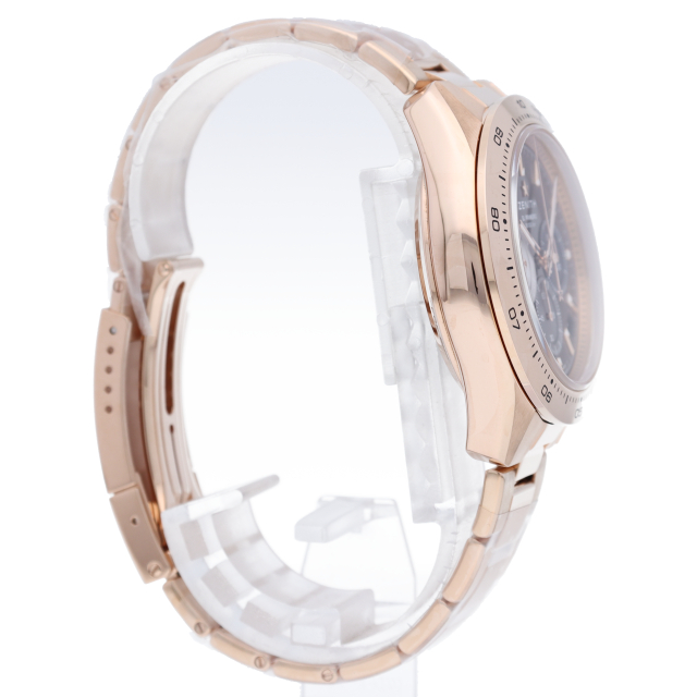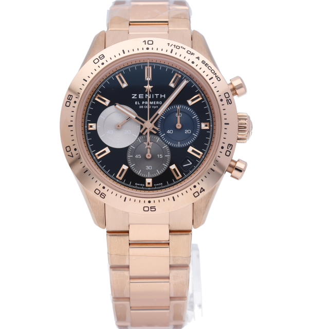 クロノマスター スポーツは、ゼニスが50年以上に渡って探求してきたスポーティーなクロノグラフと自動巻クロノグラフ キャリバーの頂点に立つモデルです。1/10秒単位の精度で経過時間を計測および表示する最新のエル・プリメロ クロノグラフ キャリバーを搭載したこのモデルは、現代的でありながら見間違えることのないゼニスらしいデザインを備えています。