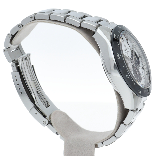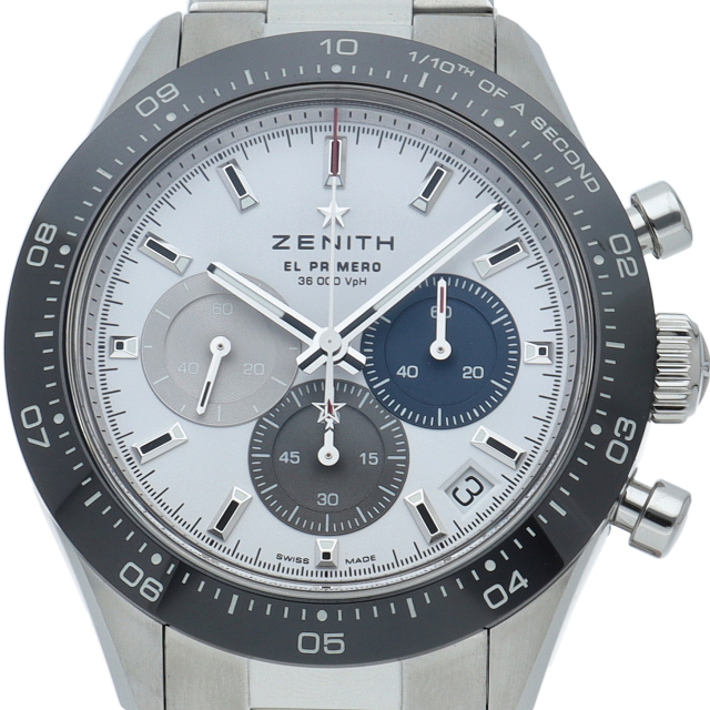クロノマスター スポーツは、ゼニスが50年以上に渡って探求してきたスポーティーなクロノグラフと自動巻クロノグラフ キャリバーの頂点に立つモデルです。1/10秒単位の精度で経過時間を計測および表示する最新のエル・プリメロ クロノグラフ キャリバーを搭載したこのモデルは、現代的でありながら見間違えることのないゼニスらしいデザインを備えています。