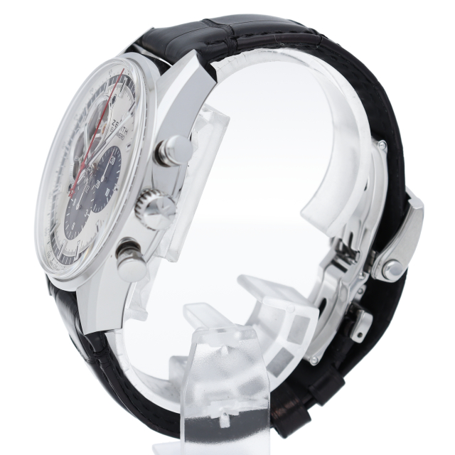 もはや説明は要らない程の絶大な人気と知名度を持つ、名機エルプリメロを搭載した「クロノマスター」。1969年発表の初代エル・プリメロをイメージした色使いが特徴的です。シースルーバッグからムーブメントもご覧頂けます。