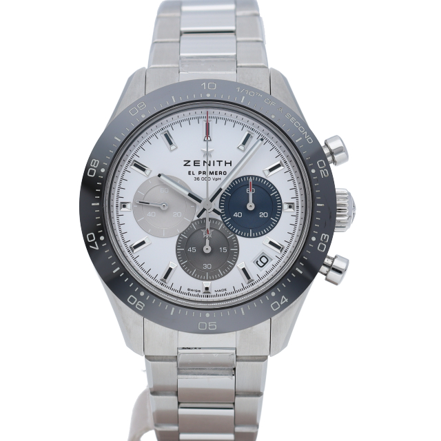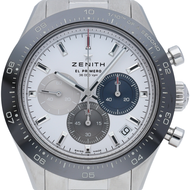 クロノマスター スポーツは、ゼニスが50年以上に渡って探求してきたスポーティーなクロノグラフと自動巻クロノグラフ キャリバーの頂点に立つモデルです。1/10秒単位の精度で経過時間を計測および表示する最新のエル・プリメロ クロノグラフ キャリバーを搭載したこのモデルは、現代的でありながら見間違えることのないゼニスらしいデザインを備えています。