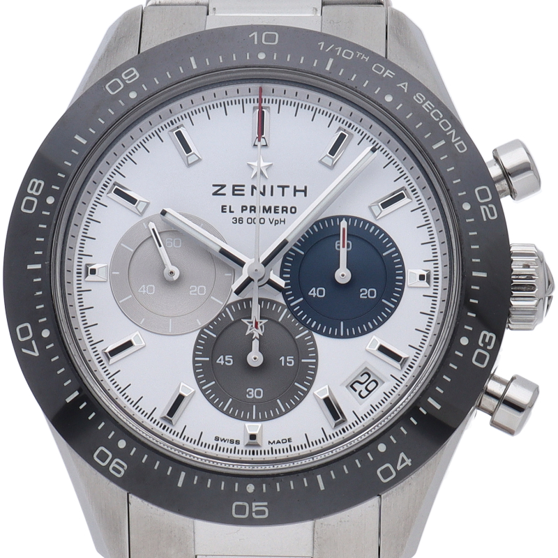 クロノマスター スポーツは、ゼニスが50年以上に渡って探求してきたスポーティーなクロノグラフと自動巻クロノグラフ キャリバーの頂点に立つモデルです。1/10秒単位の精度で経過時間を計測および表示する最新のエル・プリメロ クロノグラフ キャリバーを搭載したこのモデルは、現代的でありながら見間違えることのないゼニスらしいデザインを備えています。
