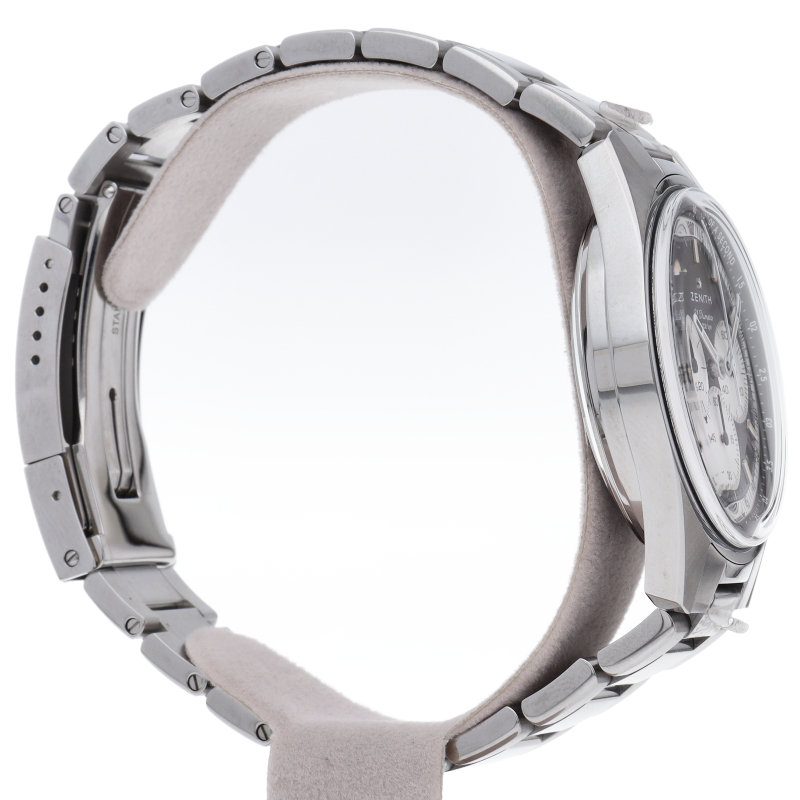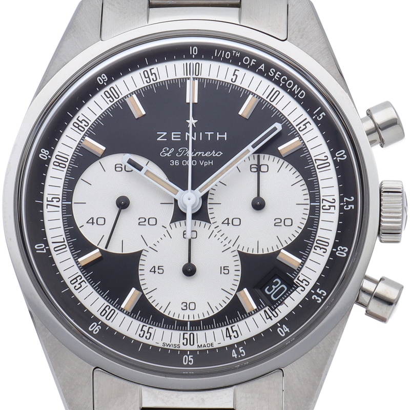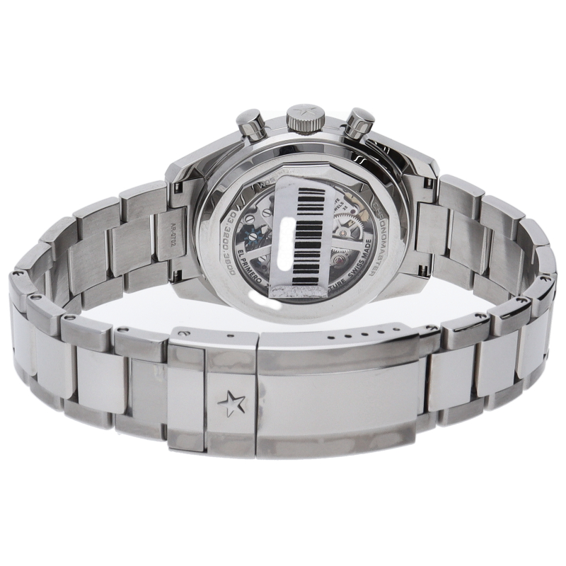クロノマスター オリジナルには、A386と同じフォルムの38mmスチール製ケースが付属しており、アイコニックな3色文字盤とブルーのレザーストラップが取り付けられています。高振動エル・プリメロ 3600自動巻クロノグラフムーブメントを搭載し、1/10秒精度のクロノグラフ機能と60時間のパワーリザーブを備えています。