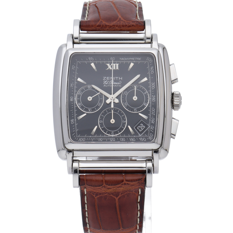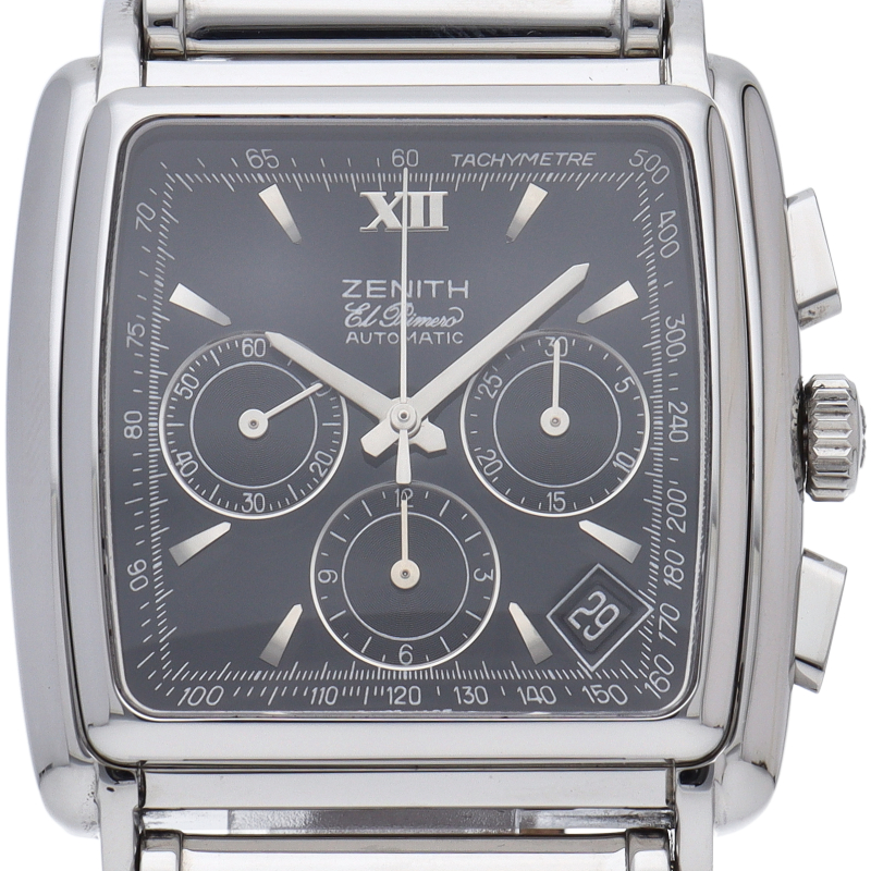 既に生産が終了している「クラス4 エル・プリメロ」。珍しい可動式のラグを持つスクエアモデルで、今のゼニスとはまた変わった雰囲気がある一本です。