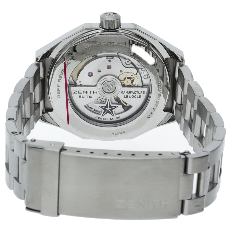 1969年の最初期のデファイの腕時計モデルを忠実に再現。14面のベゼルを備えた頑強な八角形のステンレススチール製ケースに、ブラウンのグラデーション文字盤、スチール製ラダーブレスレットを組み合わせています。エリート670 自動巻ムーブメント搭載。250本限定モデル。