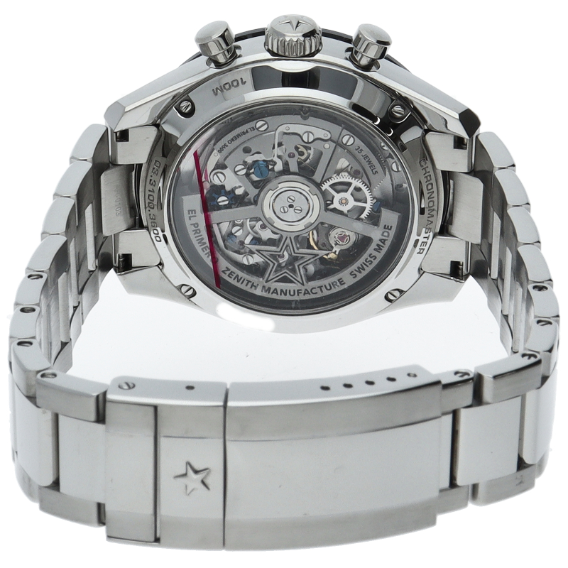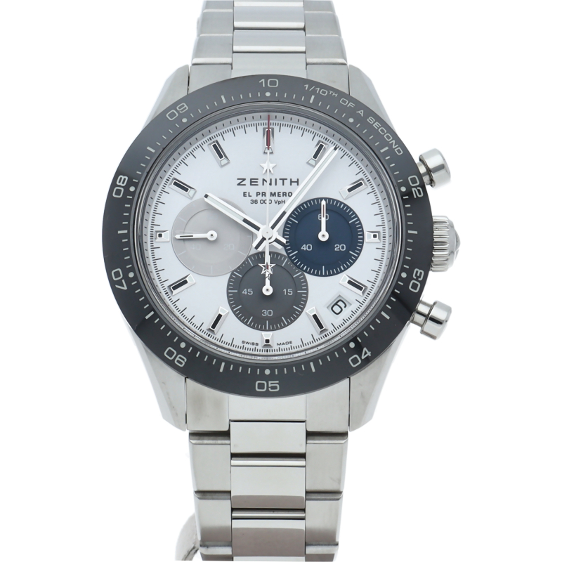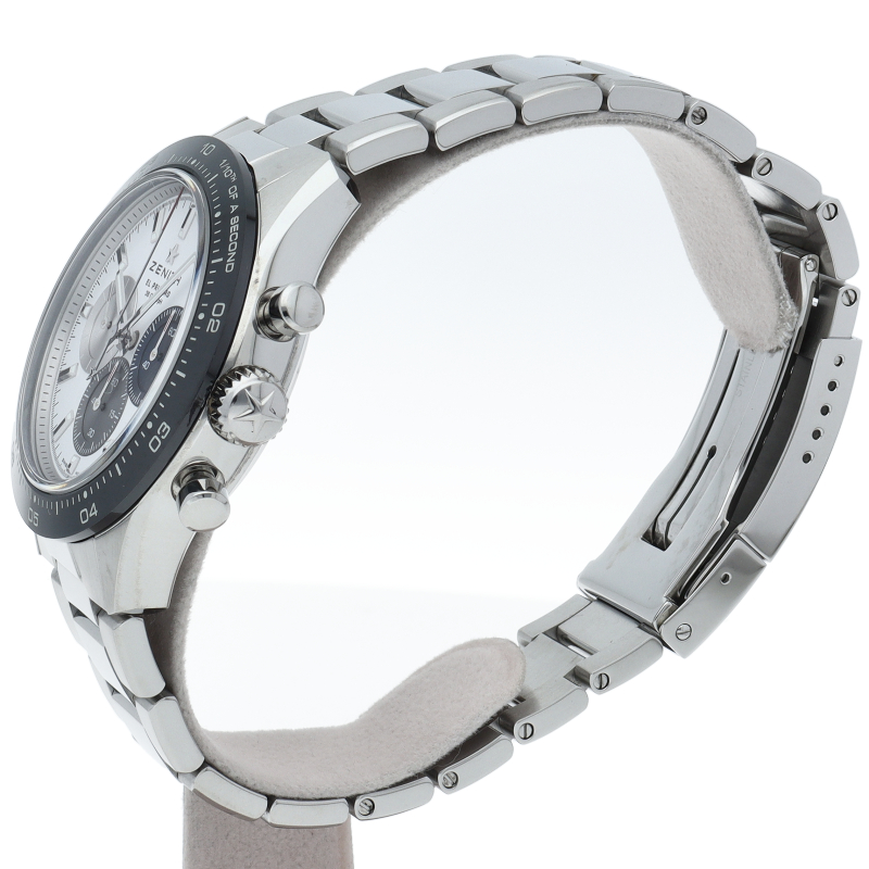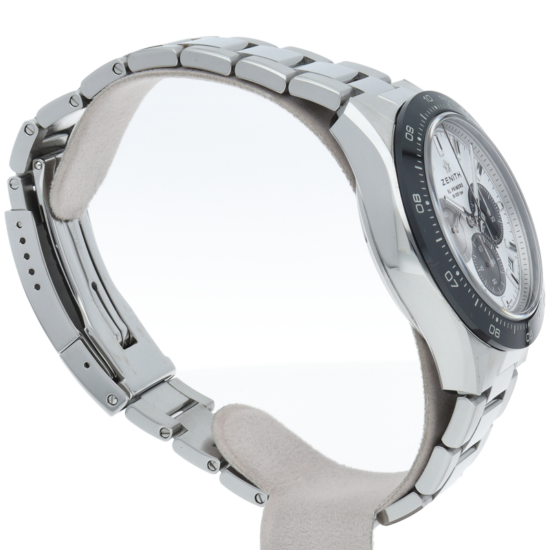 クロノマスター スポーツは、ゼニスが50年以上に渡って探求してきたスポーティーなクロノグラフと自動巻クロノグラフ キャリバーの頂点に立つモデルです。1/10秒単位の精度で経過時間を計測および表示する最新のエル・プリメロ クロノグラフ キャリバーを搭載したこのモデルは、現代的でありながら見間違えることのないゼニスらしいデザインを備えています。