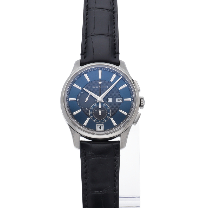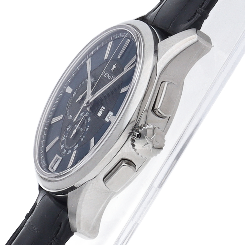 エル プリメロに初めて年次カレンダーを搭載したモデルです。文字盤外部はダークブルー、センターはブラックのツートンに、ギョーシェ彫りを施した凝った仕様です。年次カレンダーを搭載しながら、抑えた価格設定であることも魅力の一つです。