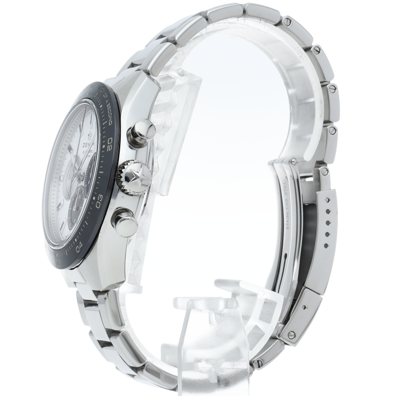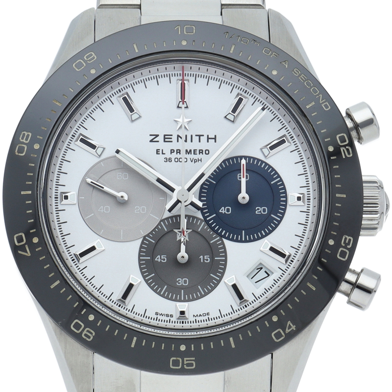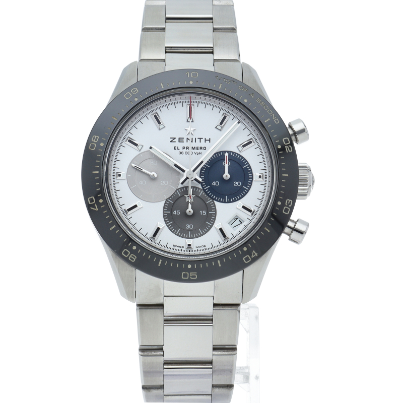 クロノマスター スポーツは、ゼニスが50年以上に渡って探求してきたスポーティーなクロノグラフと自動巻クロノグラフ キャリバーの頂点に立つモデルです。1/10秒単位の精度で経過時間を計測および表示する最新のエル・プリメロ クロノグラフ キャリバーを搭載したこのモデルは、現代的でありながら見間違えることのないゼニスらしいデザインを備えています。