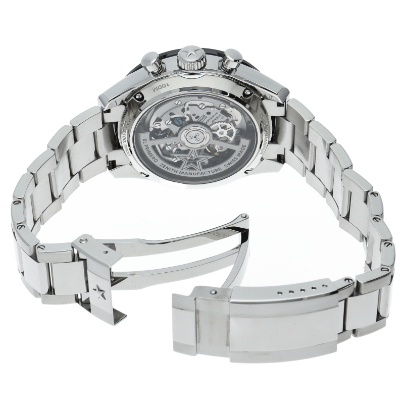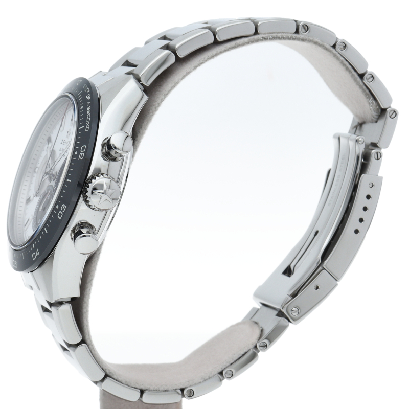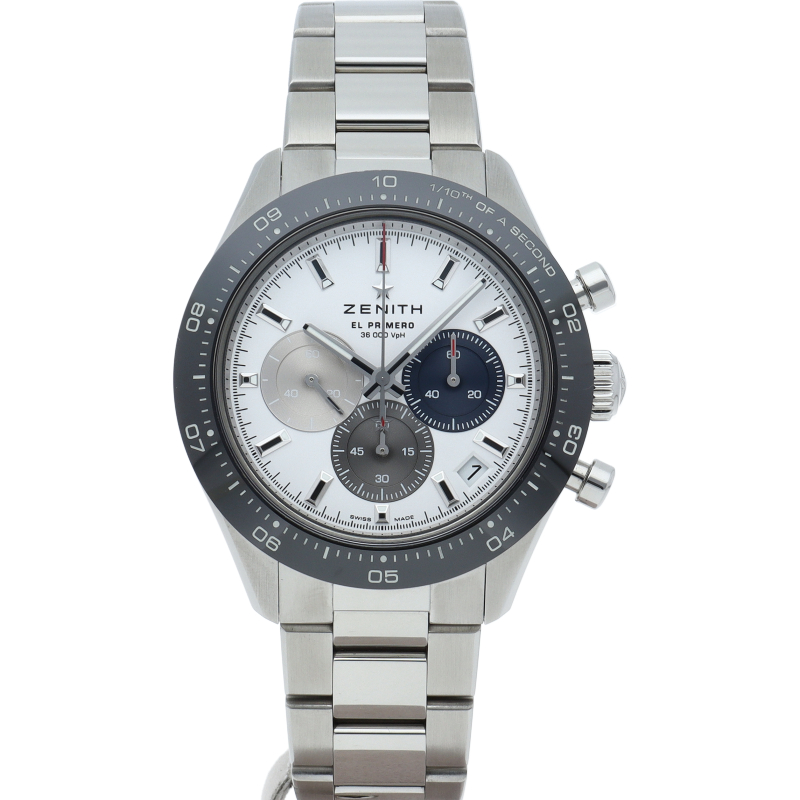 クロノマスター スポーツは、ゼニスが50年以上に渡って探求してきたスポーティーなクロノグラフと自動巻クロノグラフ キャリバーの頂点に立つモデルです。1/10秒単位の精度で経過時間を計測および表示する最新のエル・プリメロ クロノグラフ キャリバーを搭載したこのモデルは、現代的でありながら見間違えることのないゼニスらしいデザインを備えています。