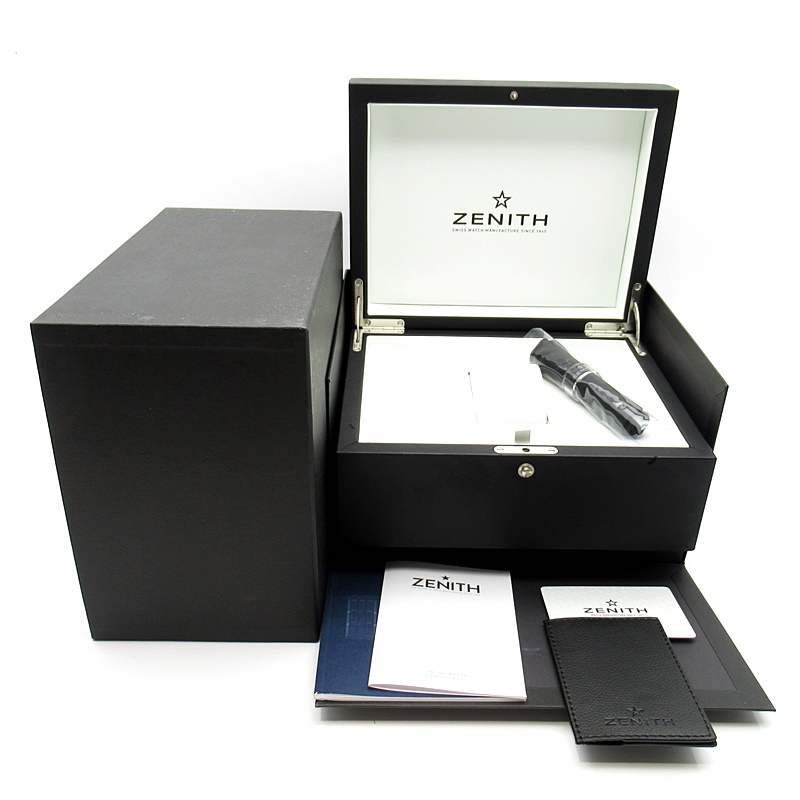 もはや説明は要らない程の絶大な人気と知名度を持つ、名機エルプリメロを搭載した「クロノマスター」。1969年発表の初代エル・プリメロをイメージした色使いが特徴的です。シースルーバッグからムーブメントもご覧いただけます。