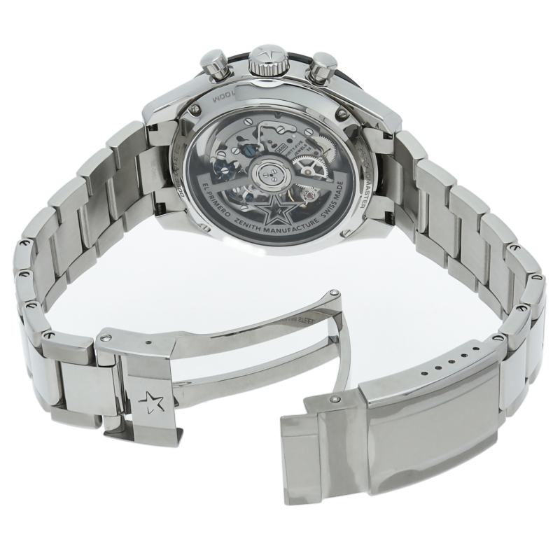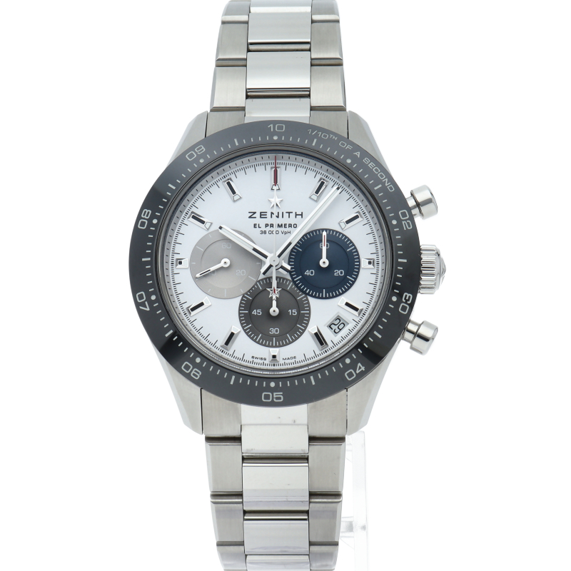 クロノマスター スポーツは、ゼニスが50年以上に渡って探求してきたスポーティーなクロノグラフと自動巻クロノグラフ キャリバーの頂点に立つモデルです。1/10秒単位の精度で経過時間を計測および表示する最新のエル・プリメロ クロノグラフ キャリバーを搭載したこのモデルは、現代的でありながら見間違えることのないゼニスらしいデザインを備えています。