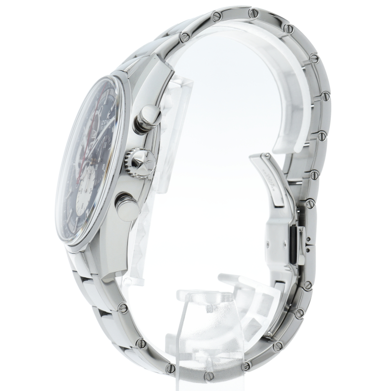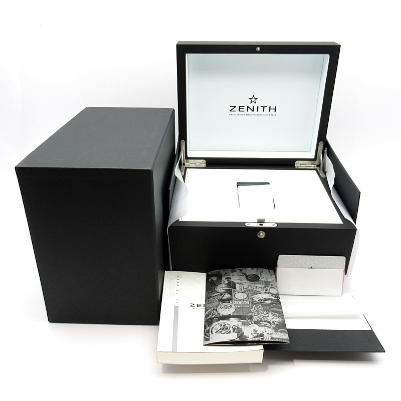 もはや説明は要らない程の絶大な人気と知名度を持つ、名機エルプリメロを搭載した「クロノマスター」。1969年発表の初代エル・プリメロをイメージした色使いが特徴的です。シースルーバッグからムーブメントもご覧頂けます。