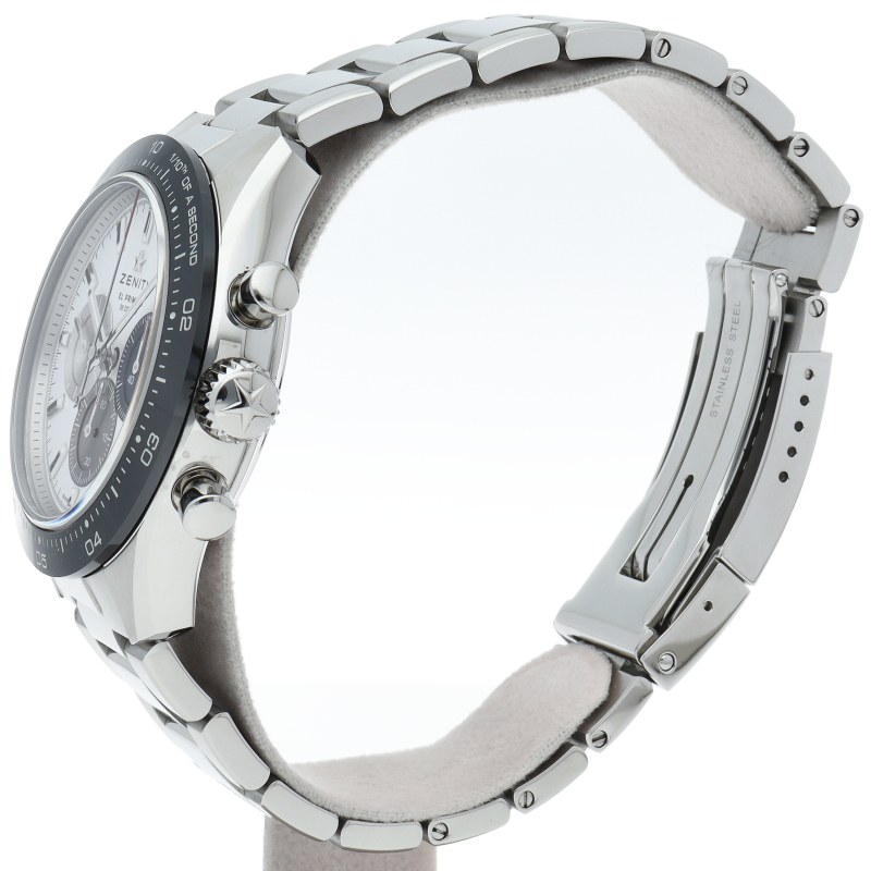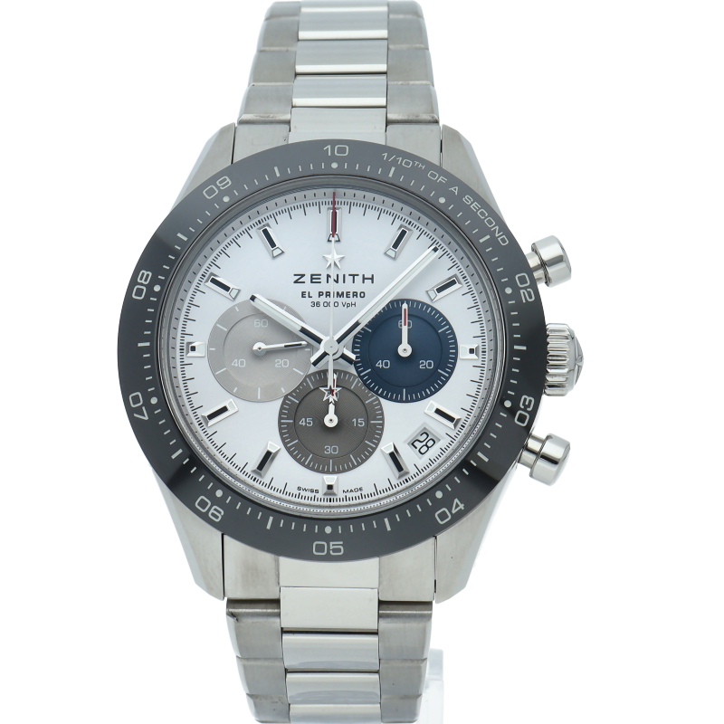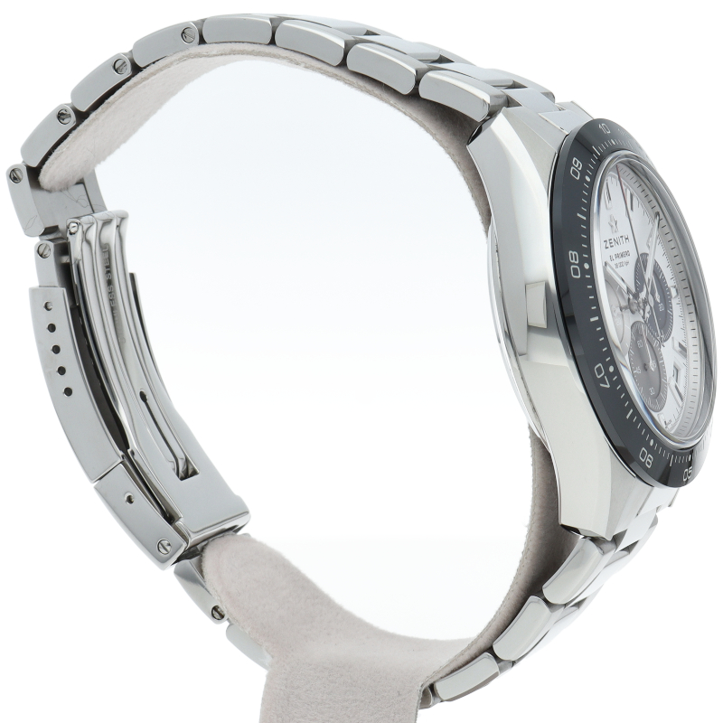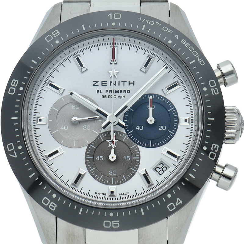 クロノマスター スポーツは、ゼニスが50年以上に渡って探求してきたスポーティーなクロノグラフと自動巻クロノグラフ キャリバーの頂点に立つモデルです。1/10秒単位の精度で経過時間を計測および表示する最新のエル・プリメロ クロノグラフ キャリバーを搭載したこのモデルは、現代的でありながら見間違えることのないゼニスらしいデザインを備えています。
