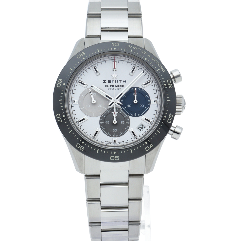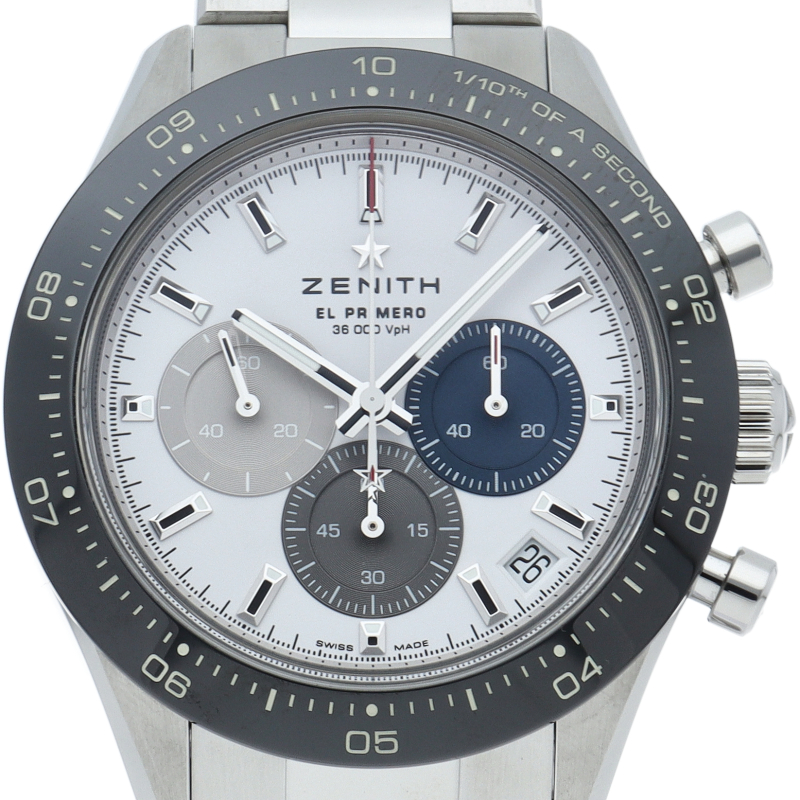 クロノマスター スポーツは、ゼニスが50年以上に渡って探求してきたスポーティーなクロノグラフと自動巻クロノグラフ キャリバーの頂点に立つモデルです。1/10秒単位の精度で経過時間を計測および表示する最新のエル・プリメロ クロノグラフ キャリバーを搭載したこのモデルは、現代的でありながら見間違えることのないゼニスらしいデザインを備えています。