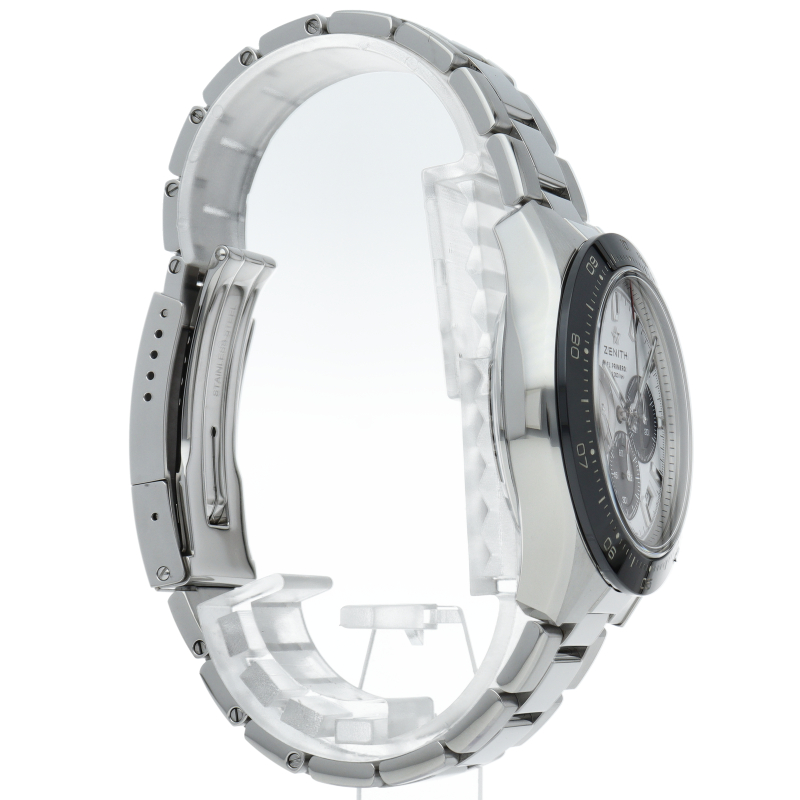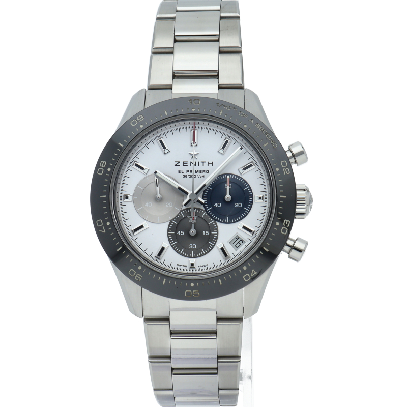 クロノマスター スポーツは、ゼニスが50年以上に渡って探求してきたスポーティーなクロノグラフと自動巻クロノグラフ キャリバーの頂点に立つモデルです。1/10秒単位の精度で経過時間を計測および表示する最新のエル・プリメロ クロノグラフ キャリバーを搭載したこのモデルは、現代的でありながら見間違えることのないゼニスらしいデザインを備えています。