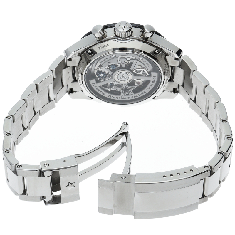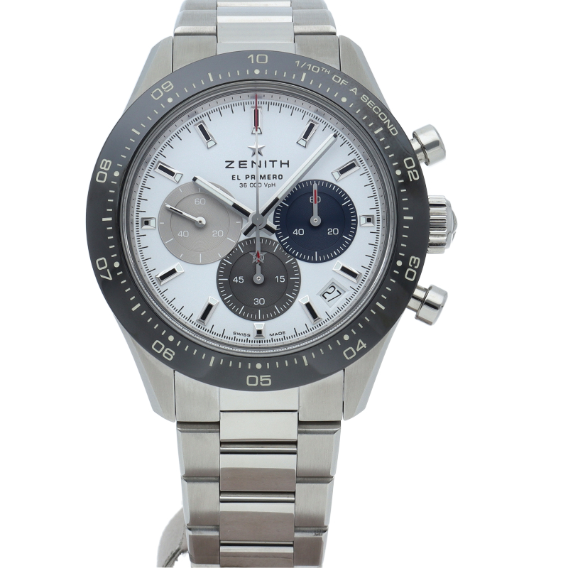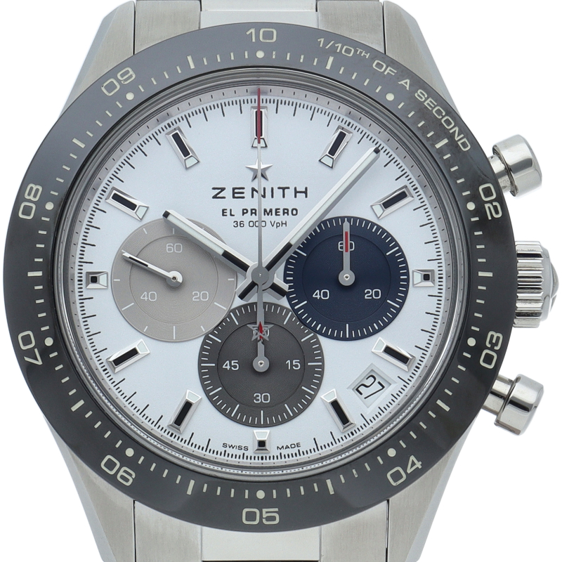 クロノマスター スポーツは、ゼニスが50年以上に渡って探求してきたスポーティーなクロノグラフと自動巻クロノグラフ キャリバーの頂点に立つモデルです。1/10秒単位の精度で経過時間を計測および表示する最新のエル・プリメロ クロノグラフ キャリバーを搭載したこのモデルは、現代的でありながら見間違えることのないゼニスらしいデザインを備えています。