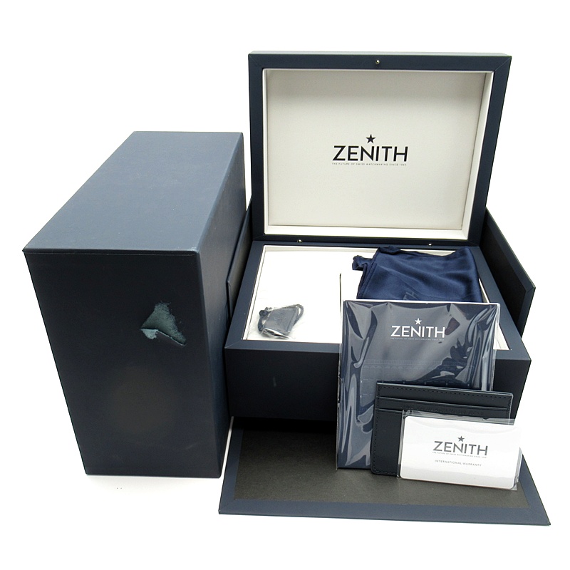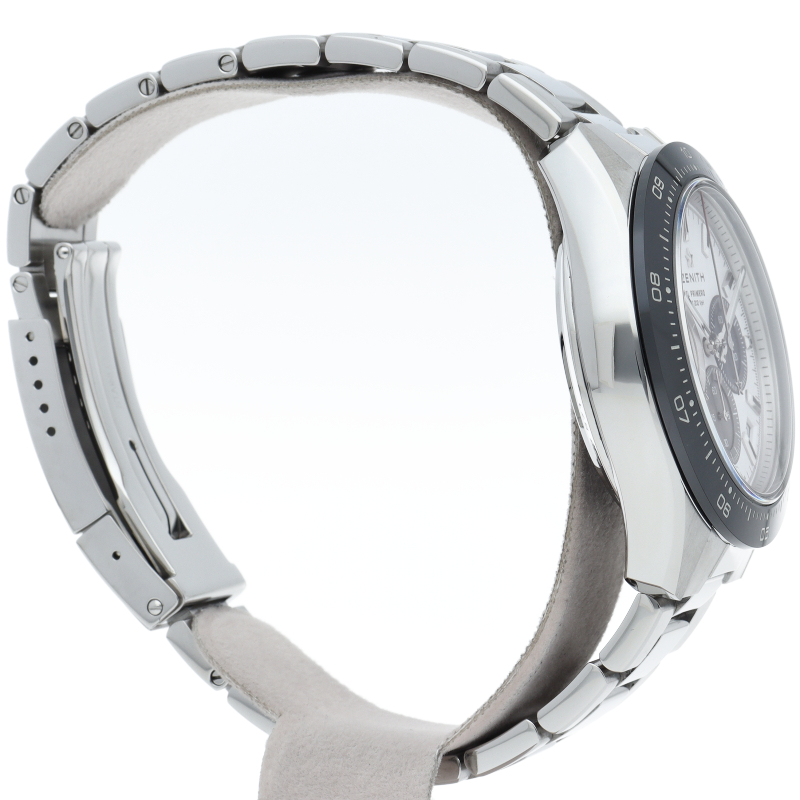 クロノマスター スポーツは、ゼニスが50年以上に渡って探求してきたスポーティーなクロノグラフと自動巻クロノグラフ キャリバーの頂点に立つモデルです。1/10秒単位の精度で経過時間を計測および表示する最新のエル・プリメロ クロノグラフ キャリバーを搭載したこのモデルは、現代的でありながら見間違えることのないゼニスらしいデザインを備えています。