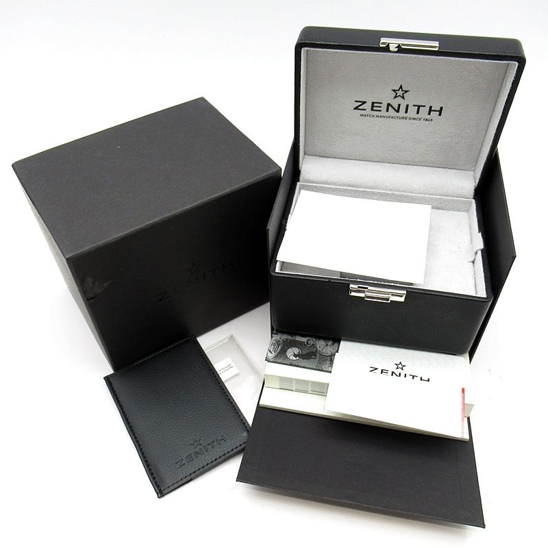 もはや説明は要らない程の絶大な人気と知名度を持つ、名機エルプリメロを搭載した「クロノマスター」。1969年発表の初代エル・プリメロをイメージした色使いが特徴的です。シースルーバッグからムーブメントもご覧いただけます。
