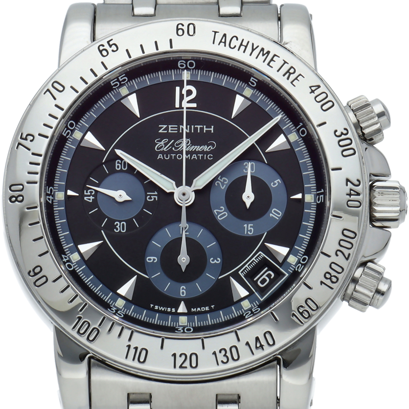 名機エルプリメロを搭載した、ゼニスを代表するモデル「エルプリメロ レインボー」ブルーフェイスのクールな逸品です。すでに生産が終了し、良い個体の数も少なくなっています。