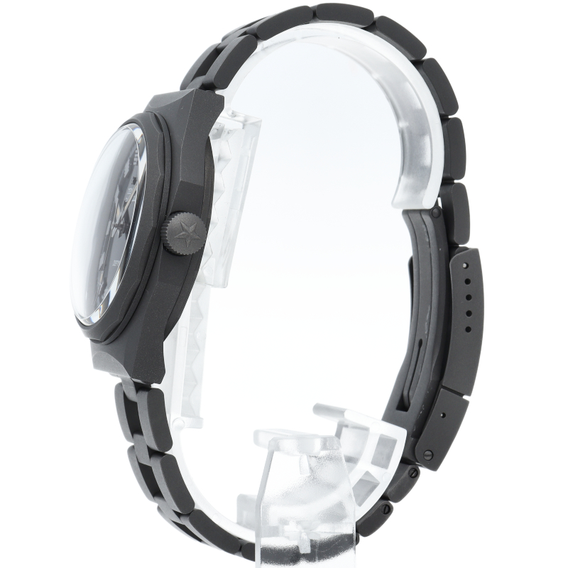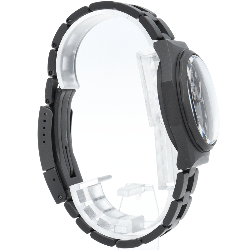 1969年の初期のデファイの腕時計モデルを現代的に再解釈。14面のベゼルを備えた頑強な八角形のマット仕上げチタン製ケースに、チタン製ラダーブレスレットを組み合わせています。マットブラックの文字盤が特徴的なヴィンテージ感を添えています。エリート670 自動巻ムーブメント搭載。