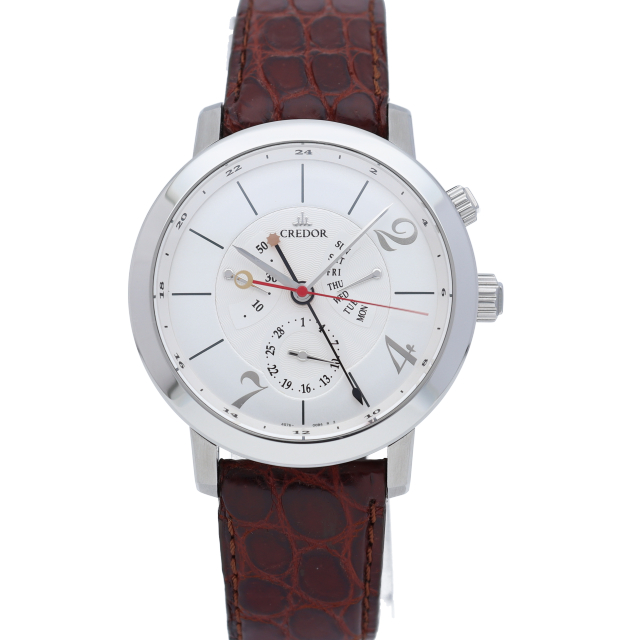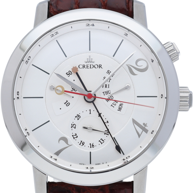 月をイメージしてデザインされたセイコーならではの繊細な美しさをモダンに表現した人気モデル「クレドール ノード」。レトログラード式のパワーリザーブやデイデイト表示、GMT機能を兼ね備えたとても機能的なモデルです。