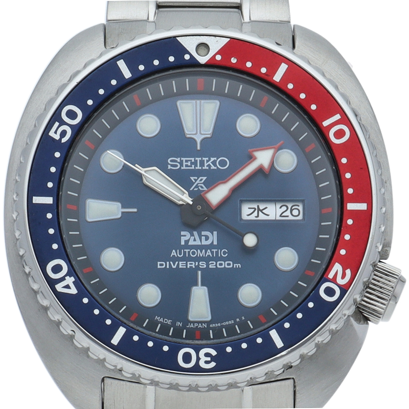 海外で高い人気を3rdダイバータートルを日本正式導入。程よいサイズとデザインで長期間、飽きずに使えるデザインです。セイコーダイバーに相応しい、高い視認性が確保されたダイヤルレイアウト。オーセンティックなMatt調なダイヤルに加え、放射仕上げのダイヤルをダイバーズで採用。海中にみる太陽光のきらめきをダイヤルに表現しました。人気のカラーバリエーションのPADIスペシャルモデルです。