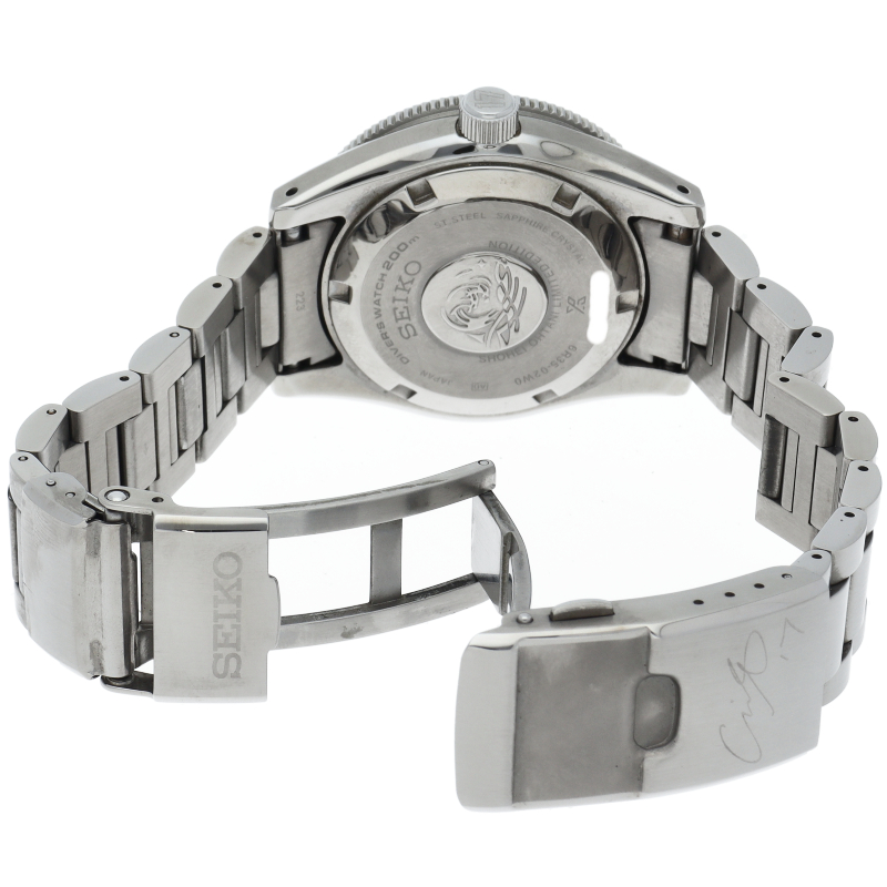 プロスペックス初となる大谷翔平限定モデルでは、セイコーダイバーズ史を切り拓いた初代モデルである「1965 メカニカルダイバーズ」をベースに採用しています。ダイバーエクステンダー付き中留の上面には大谷翔平選手のサインがマーキングされています。SBDC191/6R35-02W0。