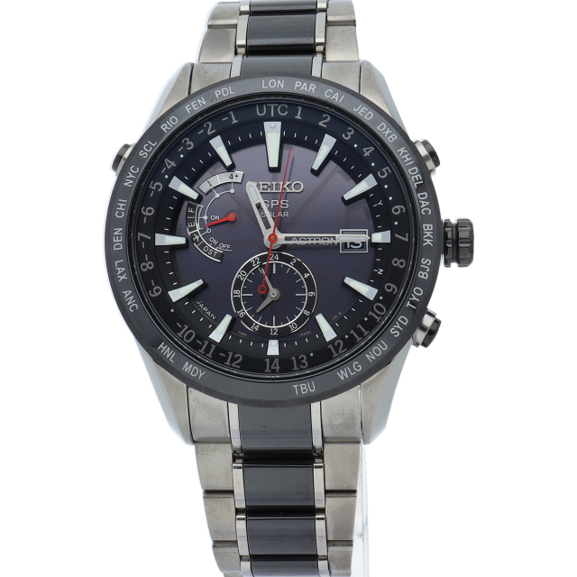 セイコーの世界初の技術で地球上のどこにいても、現在時刻を取得する「ソーラーGPS衛星電波時計」です。世界にある39あるタイムゾーンのすべてに対応。7X52-0AF0。