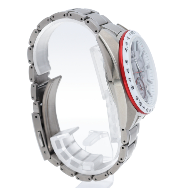ホワイトを基調としたカラーリングに、国境なき医師団のブランドカラー「レッド」をダイヤル、ベゼル、付け替え用オプションストラップに採用。艶やかなホワイトのセラミックス素材とレッドのアルミパーツを組み合わせた2トーンカラーのベゼルが特徴です。SBXC091(5X53-0BH0)