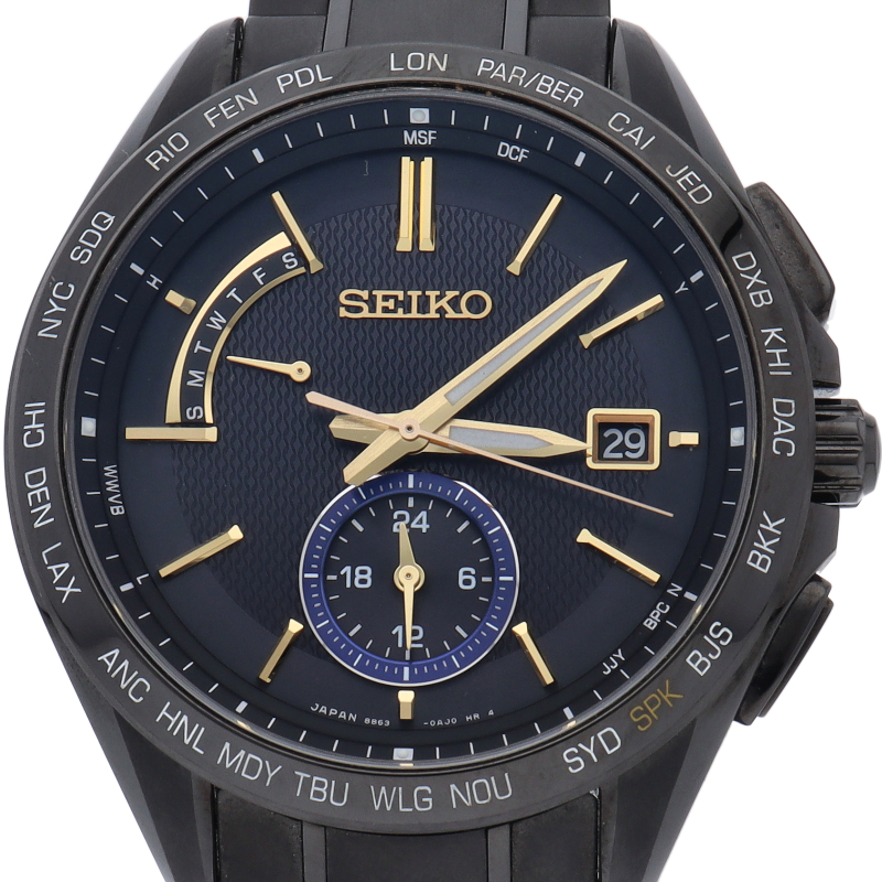 北海道日本ハムファイターズのチームカラーを思わせる特別なカラーリングに仕上げています。針やアワーマークは高級感のあるゴールドに、6時位置の小時計のリングパーツにはユニフォームやロゴマークで印象的に使われているブルーをさりげなくあしらいました。SAGA257(8B63-0AM0)。