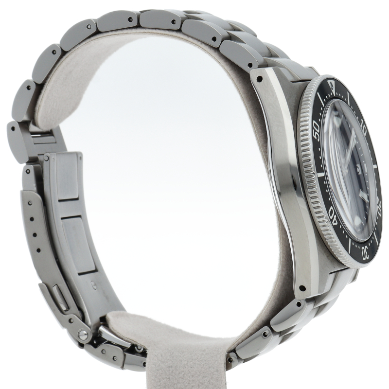 セイコーダイバーズの原点となる1965 ダイバーズをベースにしたこのモデルは、半世紀を超える歴史や培われてきた技術の積層を、長い時間をかけて形成された氷河と重ね合わせ、ディープブルーのダイヤルとソリッドなブラックのベゼルで表現しています。SBDC165/6R35-01V0。