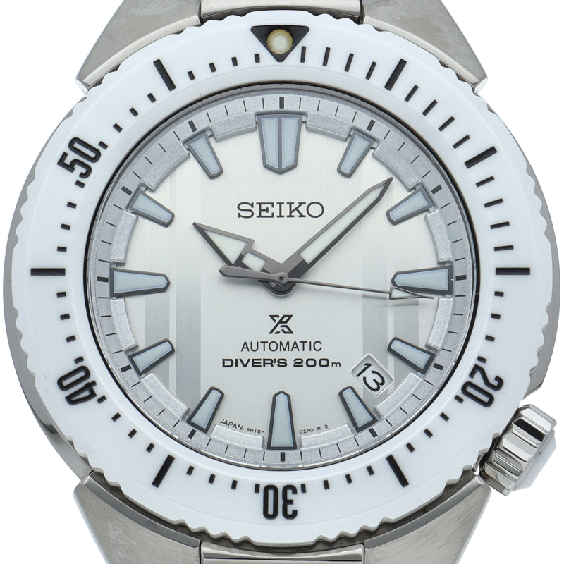 セイコーの「プロスペックス」の本格派ダイバーズウォッチ「トランスオーシャン」です。本格的なダイバーズウォッチとしての機能はそのままに、着用シーンを問わないスマートなデザインで、清潔感がありながらもワイルドでタフな印象を演出する、二律背反の本格ダイバーズウォッチです。ゼロハリバートンとのコラボレーションデザインで、限定500本の商品です。SBDC043/6R15-03H0