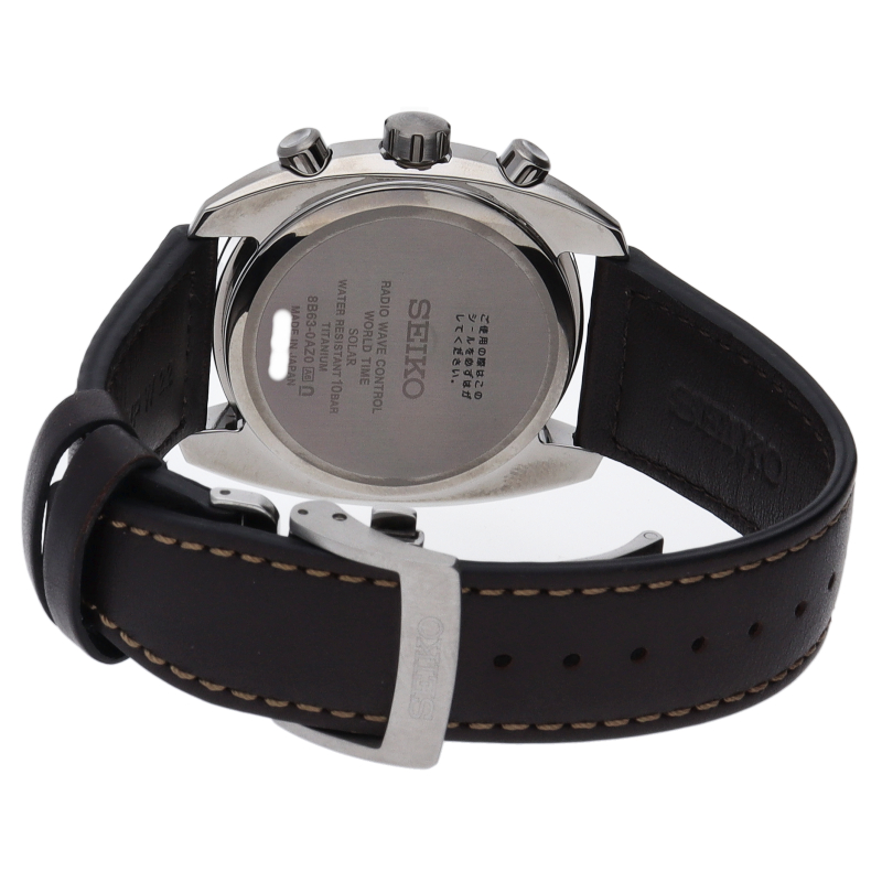 セイコーの世界初の技術で地球上のどこにいても、現在時刻を取得する「ソーラーGPS衛星電波時計」です。ソーラー発電により駆動。GPS衛星に搭載された原子時計の時刻信号を受け取り、常に「究極の精度」を維持します。8B63-0AZ0