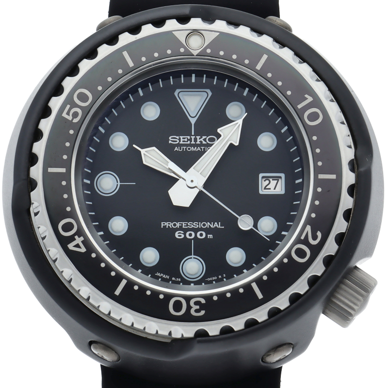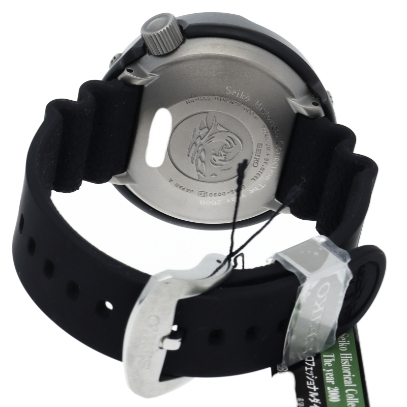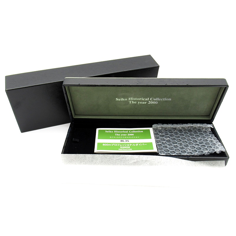 セイコーダイバーウォッチ600mのデザインをベースに「セイコーヒストリカルコレクションシリーズ」の最終モデルとして、2000年に1000本限定で復刻販売されたモデルです。600m飽和潜水用防水を備え、ムーブメントには雫石高級時計工房製「キャリバー8L35(8振動)」が採用されています。パワーリザーブ約50時間。SBDX005/8L35-0030