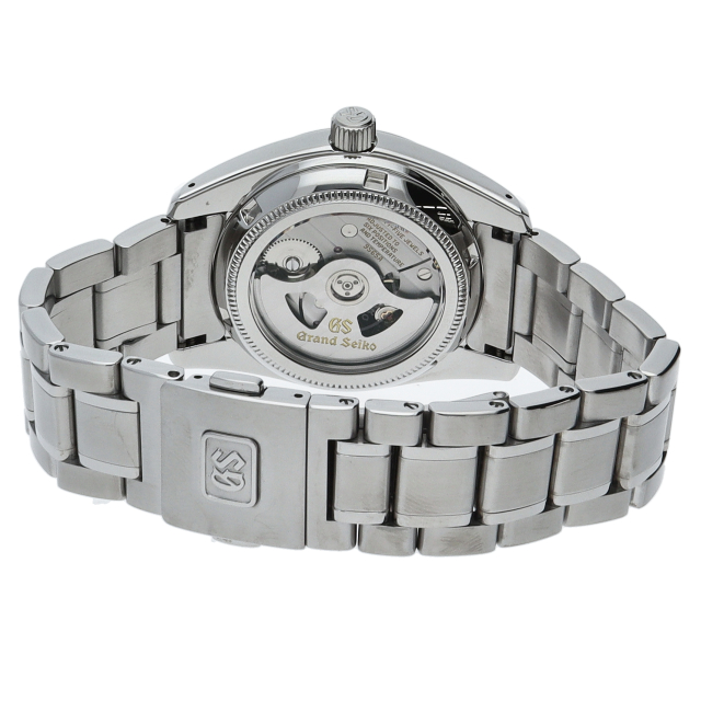 SEIKOの中でも特に人気度の高い「グランドセイコー」。セイコー独自のGS規格検査に合格したムーブメントが搭載された国産機械式最高峰の腕時計です。デイト表示機能搭載。裏スケルトン。SBGR053(9S65-00B0)