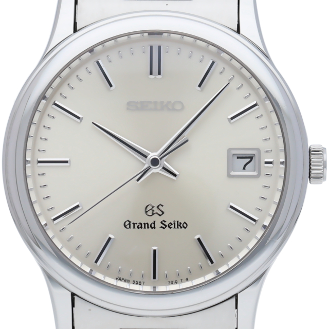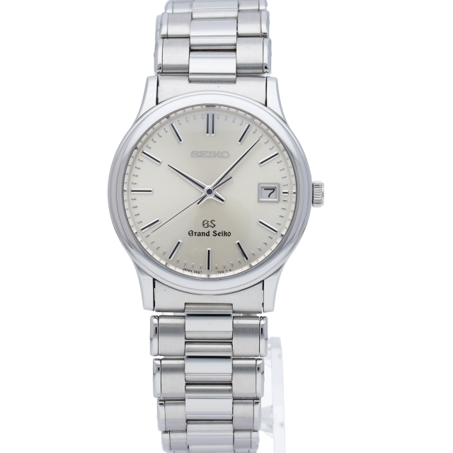 日本が誇る名品「グランドセイコー」のシンプルな3針モデルです。すでに生産は終了していますが、セイコーらしいクリーンなデザインは、今見ても古びていません。ムーブメントはセイコーならではの高性能クオーツムーブメントを搭載。SBGS007(9587-7010)