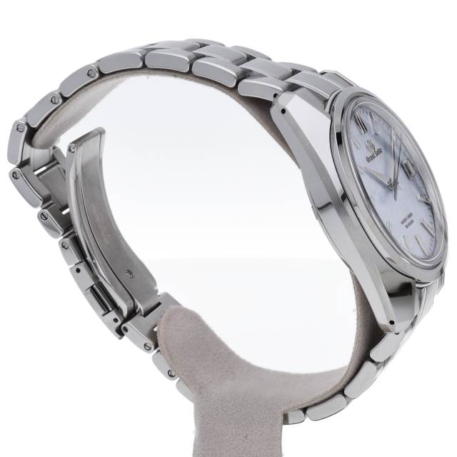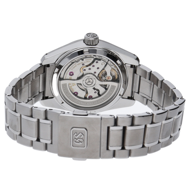 グランドセイコーのレギュラーモデルとして初めて、ケースのみならずブレスレットにも世界最高レベルの耐食性を備えた「エバーブリリアントスチール」を採用しました。白く美しい先進素材が、2020年に誕生した次代を担う革新的なメカニカルムーブメント「キャリバー9SA5」に調和し、55周年を迎えた「44GS」デザインを美しく引き立てます。SLGH013(9SA5-00F0)