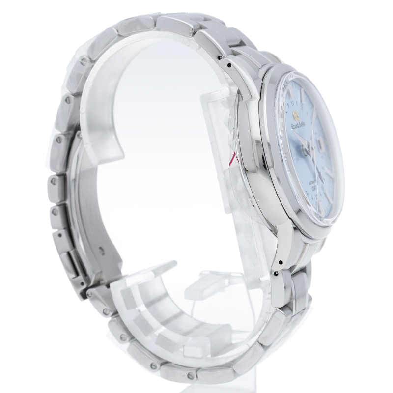 メカニカルムーブメント「キャリバー9S」の誕生25周年を記念した限定モデル「SBGM253」。明るいスカイブルーの文字盤はグランドセイコーの機械式時計を生み出す製造地「グランドセイコースタジオ 雫石」から望む岩手山の山頂から見上げる中天の情景を表現しています。