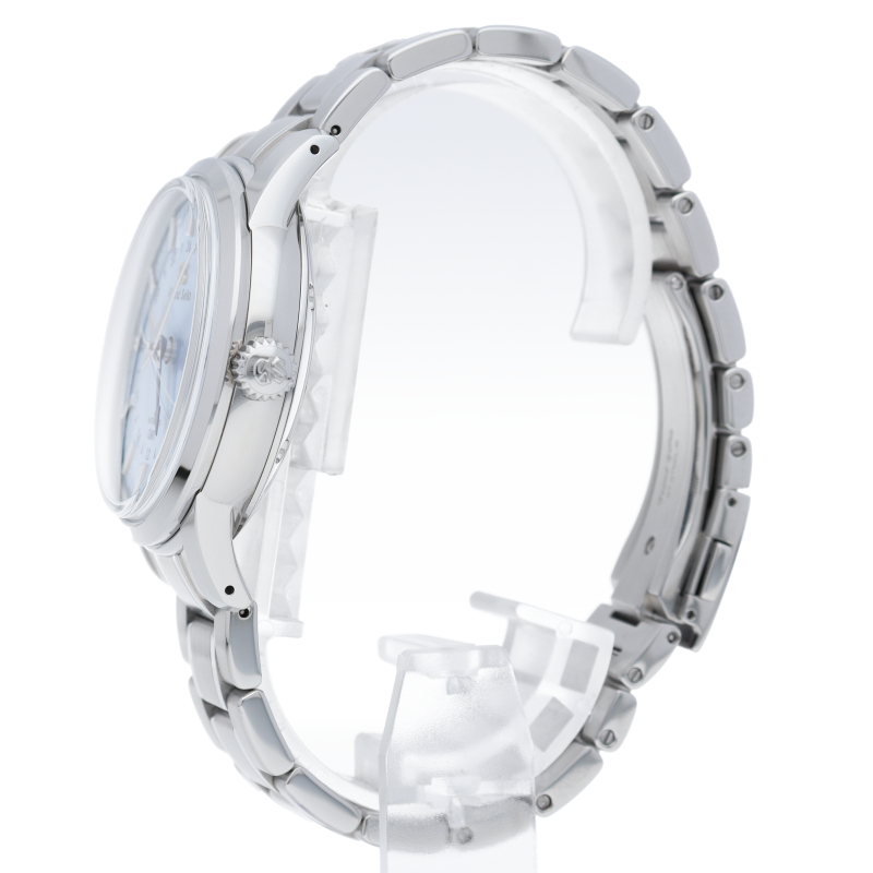 メカニカルムーブメント「キャリバー9S」の誕生25周年を記念した限定モデル「SBGM253」。明るいスカイブルーの文字盤はグランドセイコーの機械式時計を生み出す製造地「グランドセイコースタジオ 雫石」から望む岩手山の山頂から見上げる中天の情景を表現しています。SBGM253(9S66-0MA0)