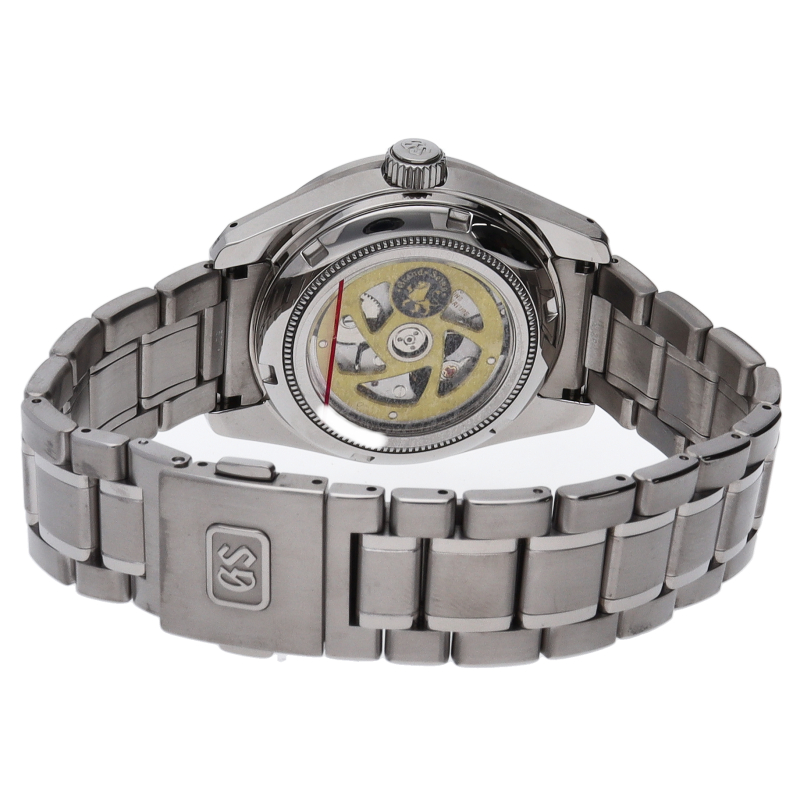 本モデルは、この受賞モデルをベースとした「44GS 55周年記念限定モデル」です。受賞モデルに搭載していた金色のチタン製回転錘を特別に本モデルにも採用し、ケースやバンドの素材を軽くて傷のつきにくいブライトチタンへアップグレードしました。国内では500本限定品のモデルです。SBGJ255/9S86-00R0。