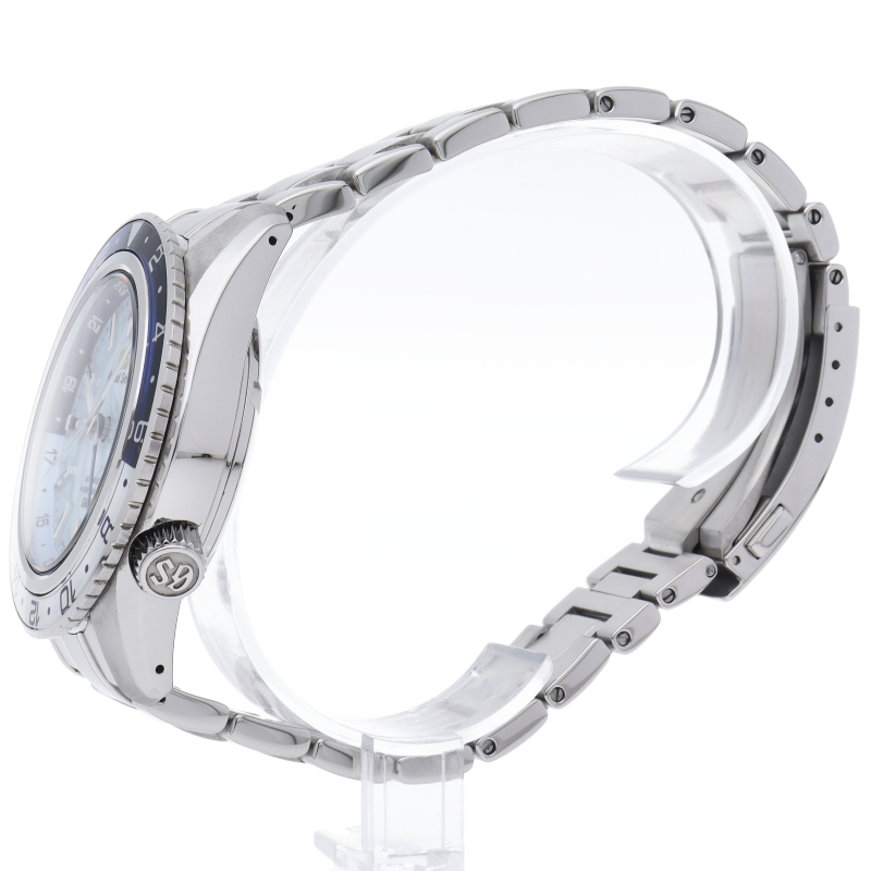 メカニカルムーブメント「キャリバー9S」の誕生25周年を記念した限定モデルです。グランドセイコーの機械式時計を生み出す製造地「グランドセイコースタジオ 雫石」から望む岩手山に広がる「雲海」と空の美しさを、ダイヤルと回転錘の爽やかなスカイブルーの色合いで表現しています。SBGJ275/9S86-00W0。