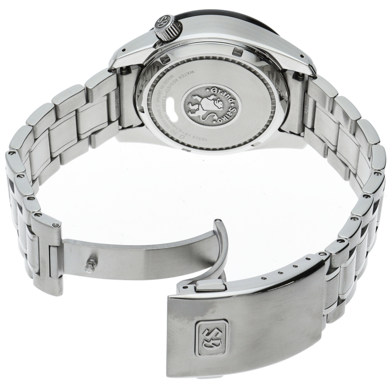 Grand Seikoロゴをダイヤル上部にセッティングした新デザインのダイヤル。視認性のよいカラーリングの24時間針と時差修正機能のついた時間針を備えたGMTモデル。機械式輪列と電子回路の複合キャリバー「スプリングドライブ」搭載。