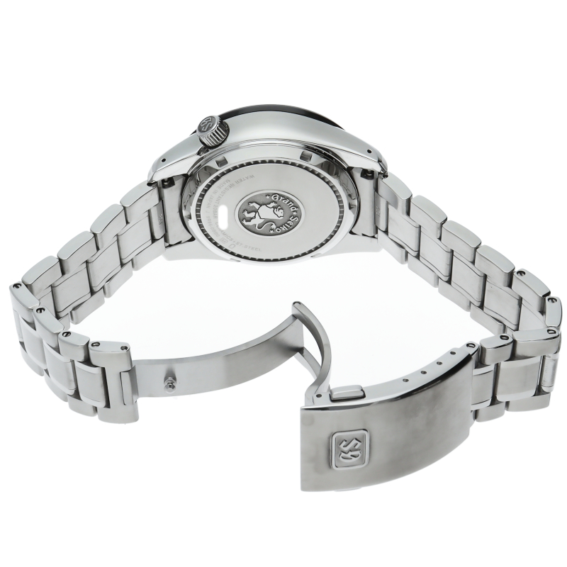 Grand Seikoロゴをダイヤル上部にセッティングした新デザインのダイヤル。視認性のよいカラーリングの24時間針と時差修正機能のついた時間針を備えたGMTモデル。機械式輪列と電子回路の複合キャリバー「スプリングドライブ」搭載。