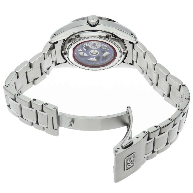 グランドセイコー誕生60周年を記念して日本の伝統色でありブランドカラーである「紺色」のダイヤルを使用した数量限定モデルです。硬化処理により耐久性がアップし巻き上げ効率も向上、天真も太くし耐衝撃も高めたキャリバー「9S65」を搭載。シースルーバックの裏蓋からは、岩手県の八幡平から覗く「岩手山」の朝焼けをイメージして作られた鮮やかなブルーの回転錘を覗くことができます。