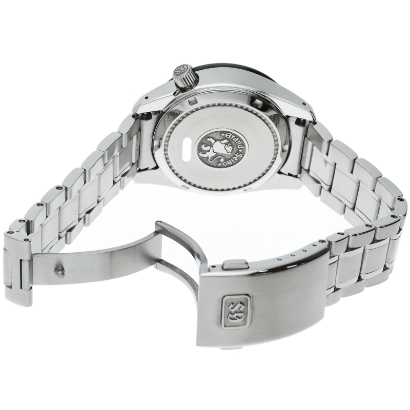 Grand Seikoロゴをダイヤル上部にセッティングした新デザインのダイヤル。視認性のよいカラーリングの24時間針と時差修正機能のついた時間針を備えたGMTモデル。機械式輪列と電子回路の複合キャリバー「スプリングドライブ」搭載。