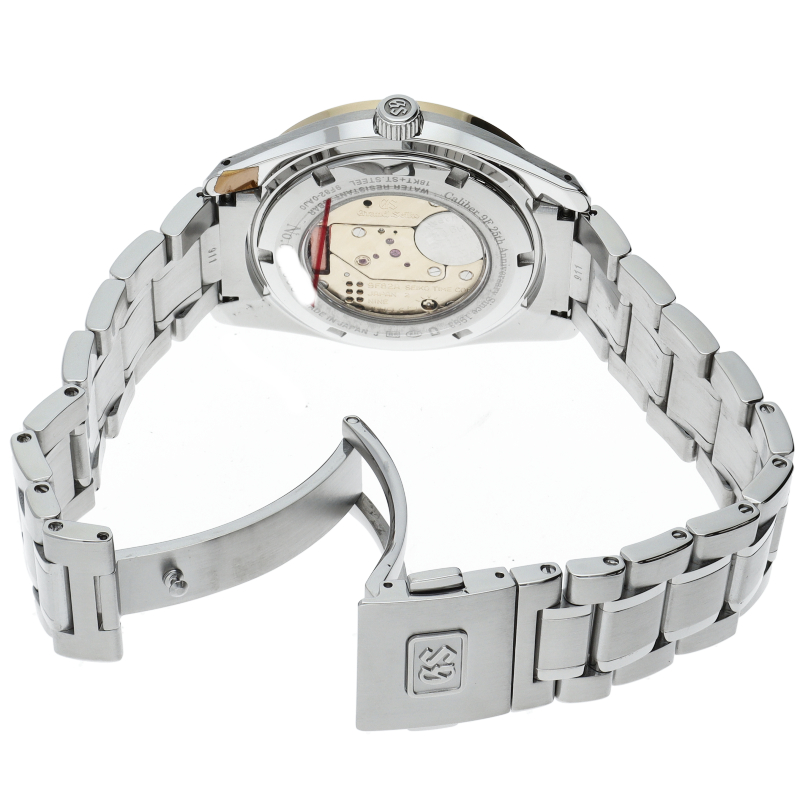 グランドセイコーが誇るクォーツムーブメント「9Fクォーツ」。世界最高峰の高い精度を誇るムーブメントであり、「SBGV238」はそんな「9Fクォーツ」誕生25周年を記念し2018年に発売した限定モデルです。ケースサイズは40mmと丁度良く幅広いシーンで活躍します。シースルーバックの裏蓋からは美しく仕上げされたムーブメントを鑑賞いただけます。