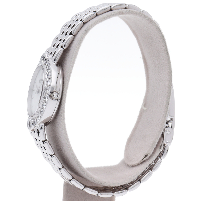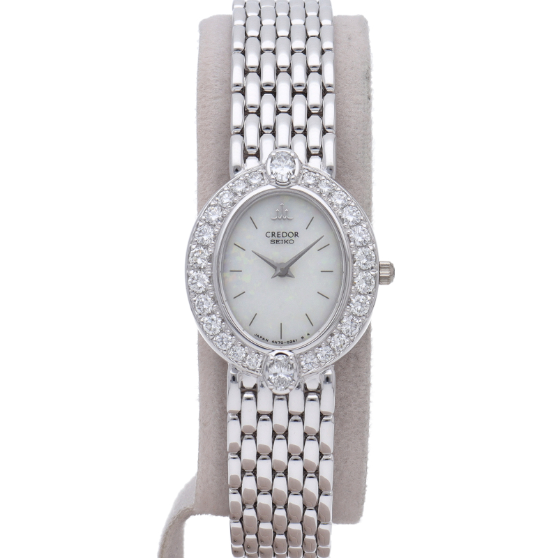 国産ブランド「セイコー」を代表するドレスウォッチライン「クレドール」。上品なホワイトゴールドを贅沢に使用、デザイン性も良く、ベゼルにはダイヤモンドが施されたエレガントな1本。4N70-5032。